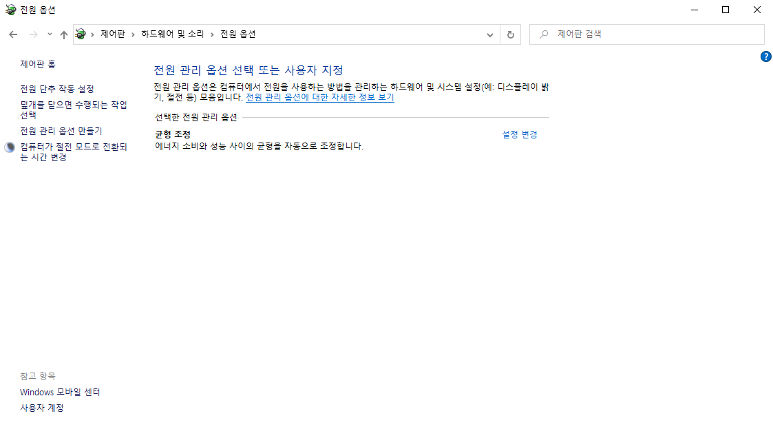 4. (왼쪽)전원 단추 작동 설정 클릭
