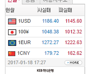 실시간 환율정보 iframe 정보 가져오기 이번에 실시간 환율정보를 가져오는 방법에 대해서 알아보는 과정에서 따로 xml로 파싱을해서 보내주는 방법을 고민하다가굳이 그렇게 할 필요가 없다해서 찾은게 iframe으로 바로 화면에 뿌려주는 것을 찾게되었다. 위에처럼 바로 보여지는 소스입니다. 1cs HTML 2017. 1. 18. 17:51